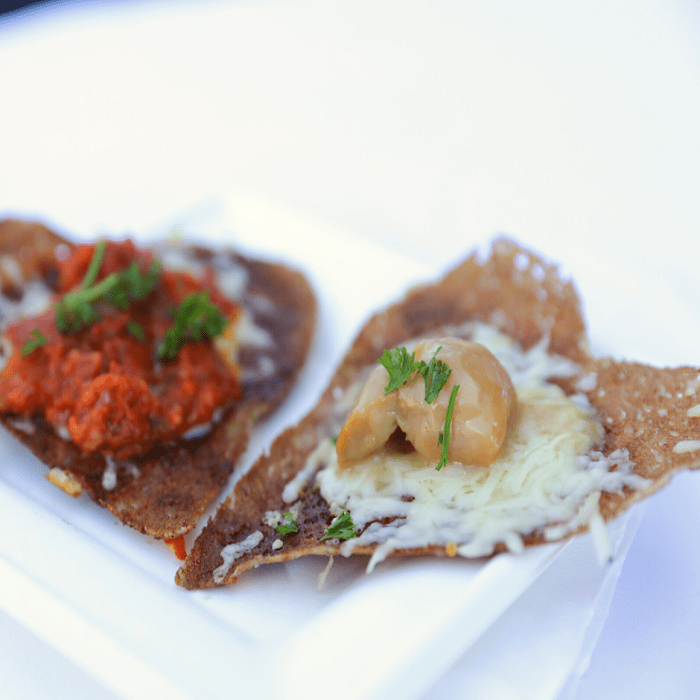 Complète (jambon supérieur, oeuf bio, emmental), Saumon (saumon fumé, champignons frais, crème ciboulette), Poireau-Chèvre (crème, miel, cumin), Poulet tandoori (crème, ail, citron)